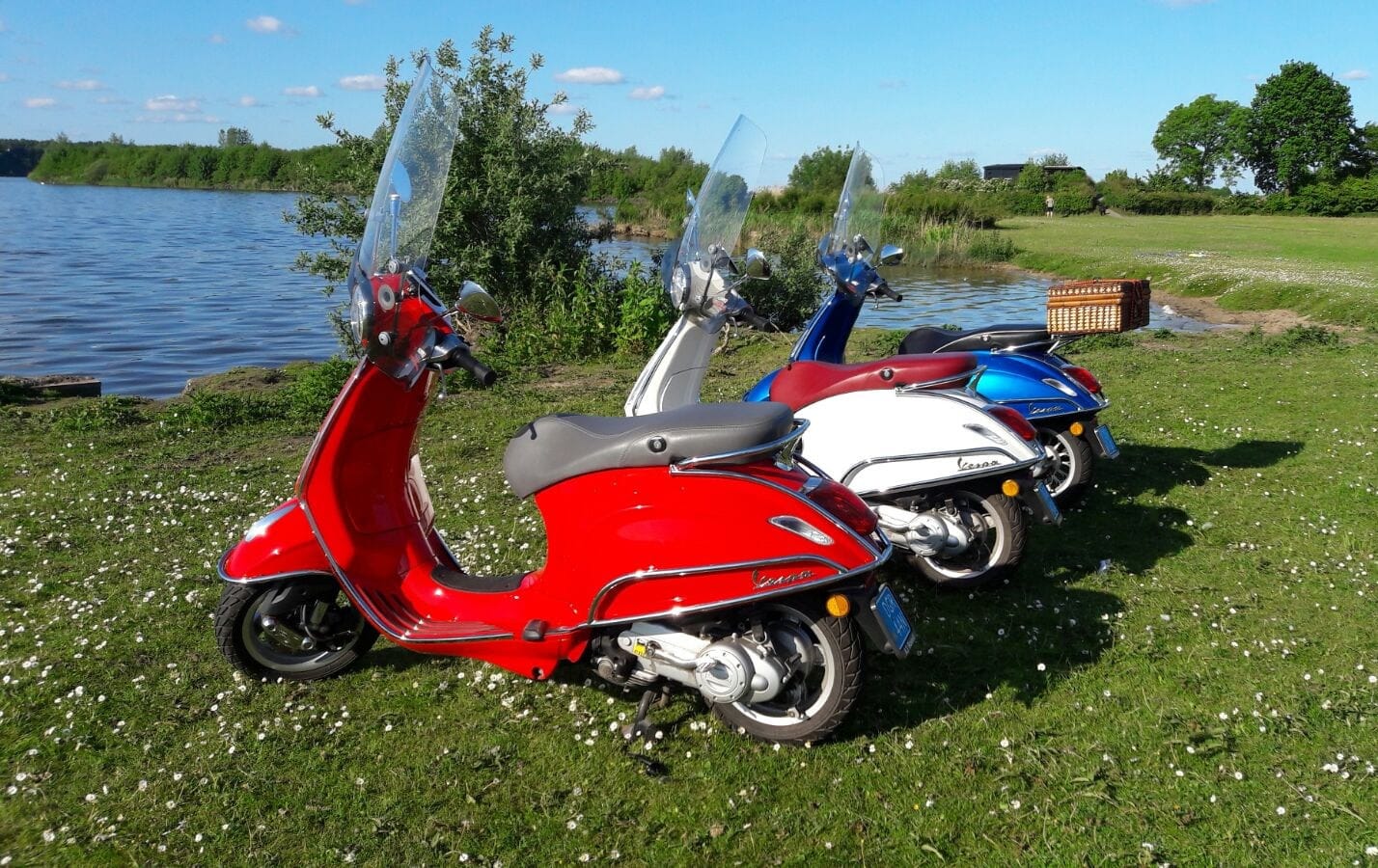 Wil je een scooter huren in Nunspeet? Dan ben je bij Veluwe Vespa Tours aan het juiste adres! Wij verhuren originele Vespa scooters van het type Sprint en Primevera. Onze Vespa’s zijn allemaal snorscooters met blauw kenteken, die een snelheid tot 25km/h behalen. Je hoeft dus geen helm op. Wil je graag elektrisch rijden? Naast de Vespa Primevera en de Vespa Sprint verhuren wij ook 2 Vespa Elettrica’s.