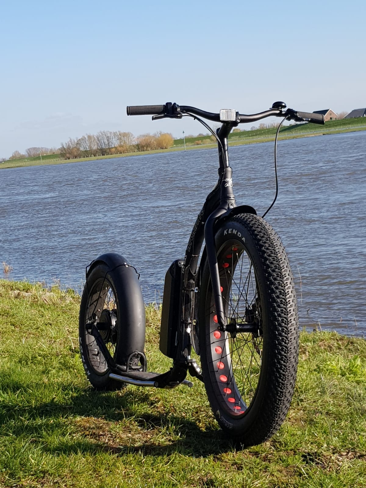 Wil je een stoere Kickbike step huren in Veenendaal, dan ben je bij Stepverhuur De Groene Grens aan het juiste adres. Met de elektrische Kickbike Fatmax verken je op comfortabele wijze de prachtige omgeving.