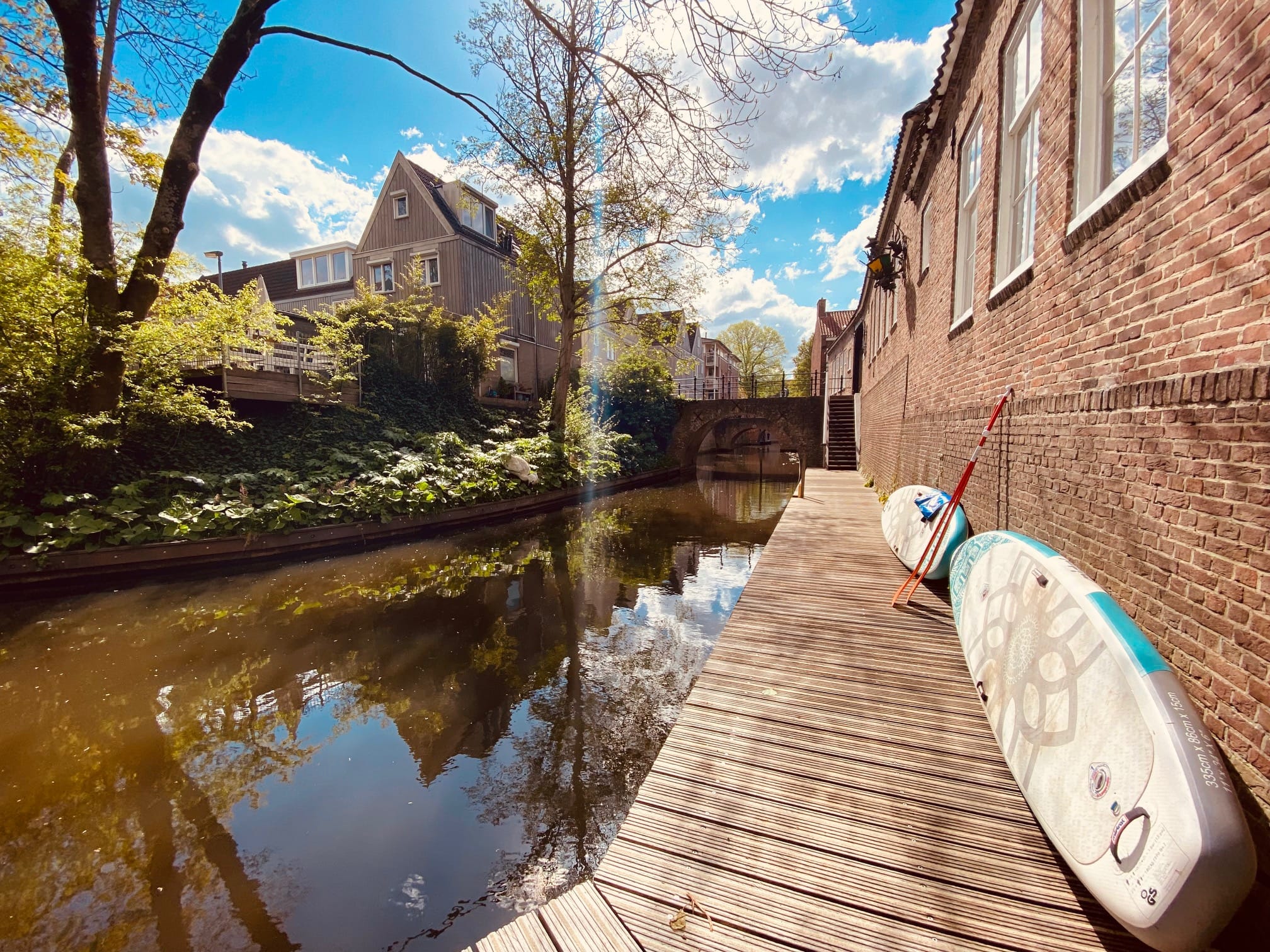 Wil je een Sup board huren in Den Bosch? Dan ben je bij Suphub Den Bosch aan het juiste adres! Bij ons kun je een SUP huren voor de hele dag waarmee je lekker zelf het water op kunt. Verken de grachten (Binnendieze) van Den Bosch vanaf onze locatie met aansluiting op de wateren van de Bossche Broek, of neem de SUP-boards mee naar eigen locatie naar keuze. Onze SUP-boards zijn opblaasbaar en daardoor makkelijk mee te nemen in een handige rugtas.